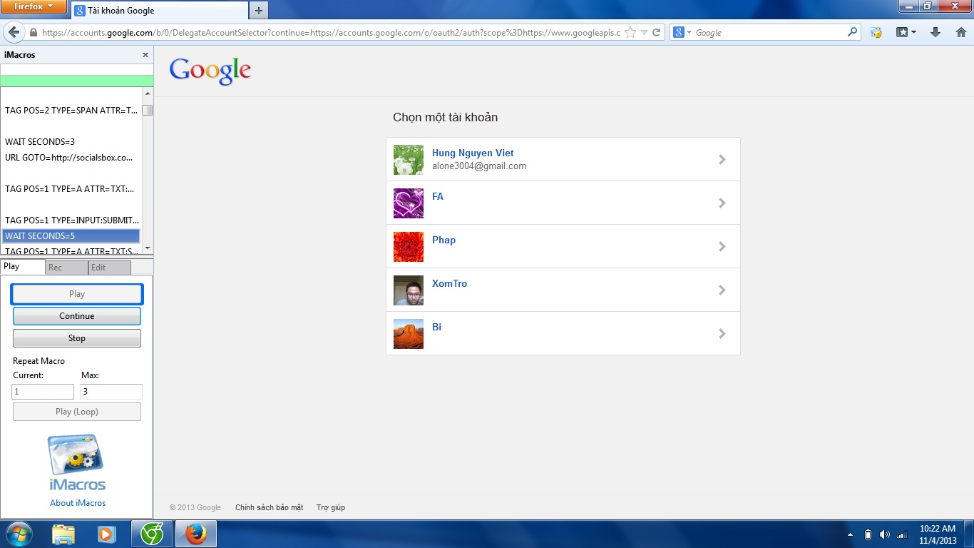 Tình hình là em cũng đang chạy imacro mà khi chạy tới đoạn tìm kênh xong thì nó ko hiện ra các link để Start mà nó lại hiện ra bảng này, cứ 1 lần chạy là lại bị, có ai biết cách vượt qua vòng này không nhỉ??