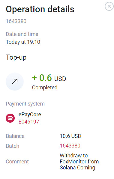 Примечание: Withdraw to FoxMonitor from Solana Coming