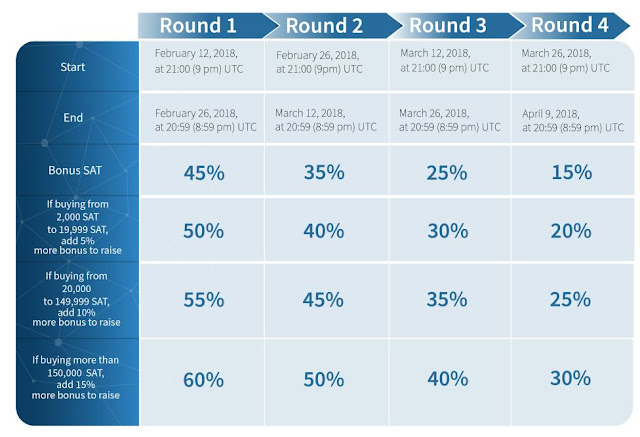 • Q2 2018: khởi chạy nền tảng quảng cáo. SAT token có thể dùng để mua và bán mục quảng cáo