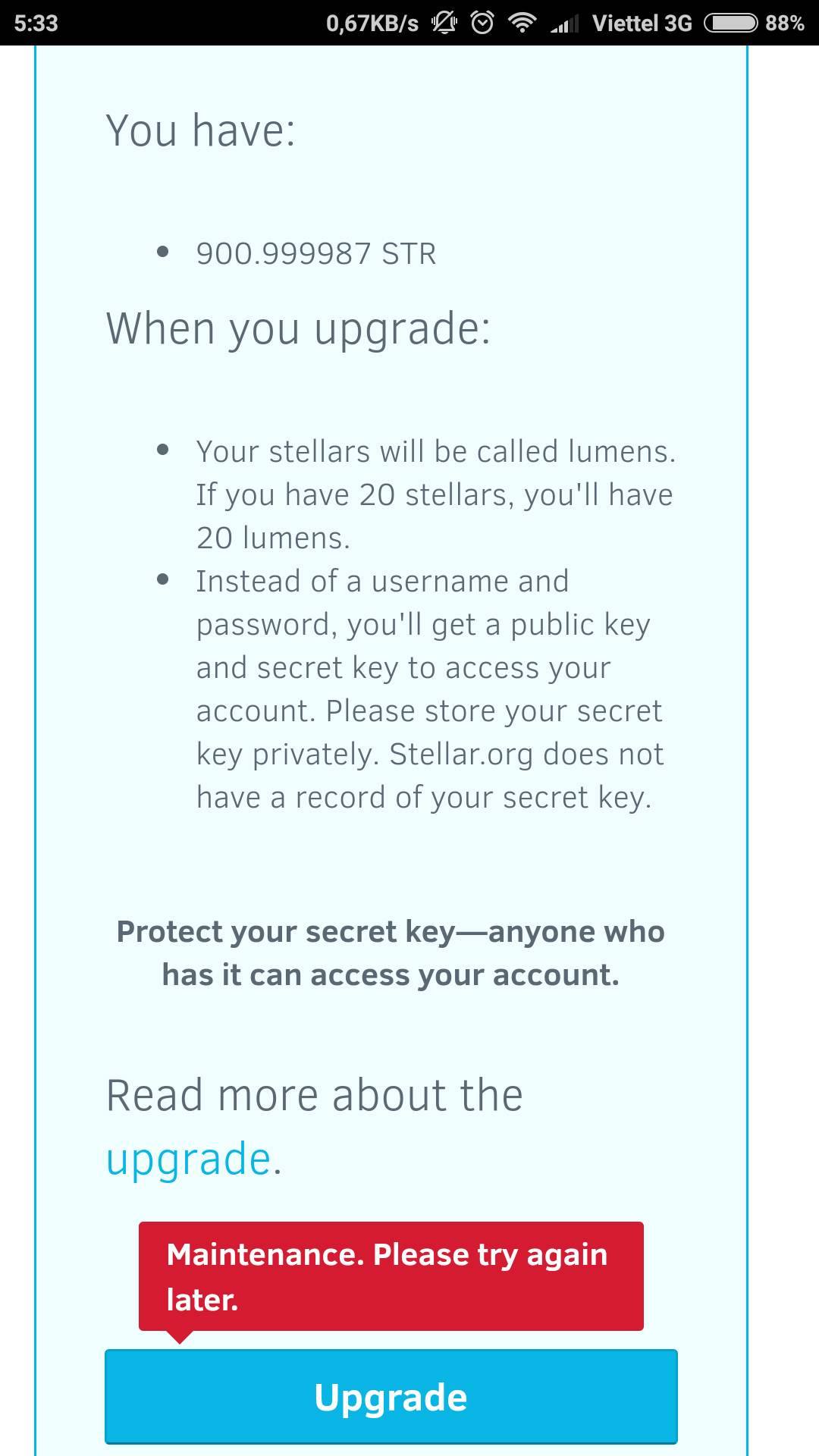 bác cho em hỏi có cách nào để xem địa chỉ email tài khoản str không nhỉ...account với pass ở launcr.stellar.org thì em vẫn nhớ mà địa chỉ email quên mấtNó báo đên ngày thứ hai này sẽ sửa xong lỗi.