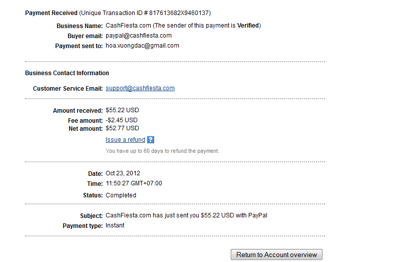 Hôm nay nhận được email này, cuối tuần tiền về 95$ sướng thật, uy tín phêts