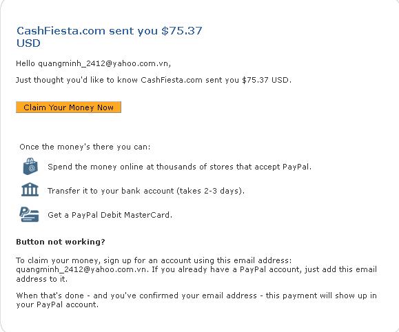 [TD="class: small"]CashFiesta.com (The sender of this payment is Verified)[/TD]