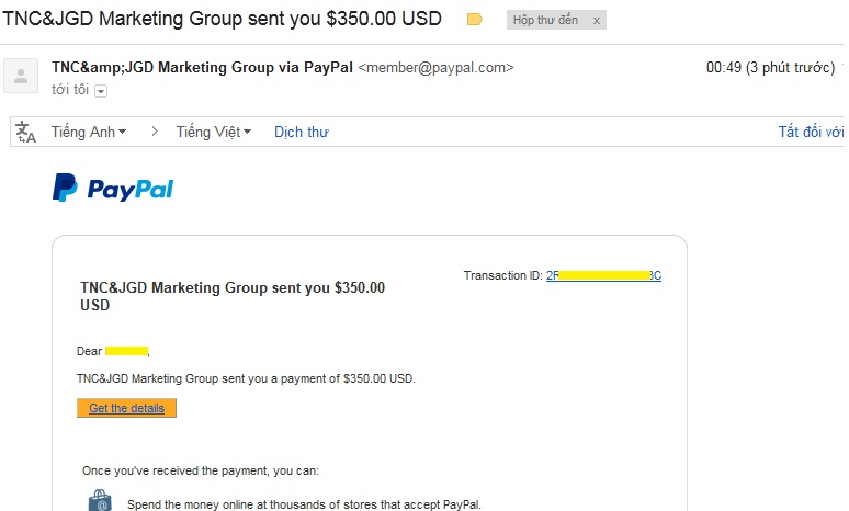Thanh toán mới nhận.