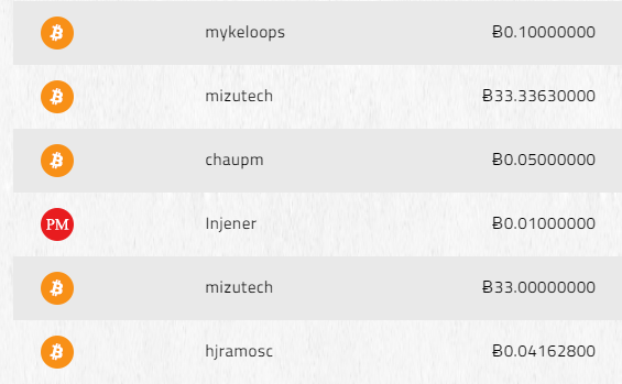 The amount of 1.78 USD has been deposited to your Perfect Money account. Accounts: U13153335->U9663775. Memo: API Payment. Withdraw to Lhyip from tablebitcoin.com.. Date: 17:17 17.03.17. Batch: 169047228.The amount of 4.75 USD has been deposited to your Perfect Money account. Accounts: U13153335->U9663775. Memo: API Payment. Withdraw to Lhyip from tablebitcoin.com.. Date: 00:45 18.03.17. Batch: 169086318.