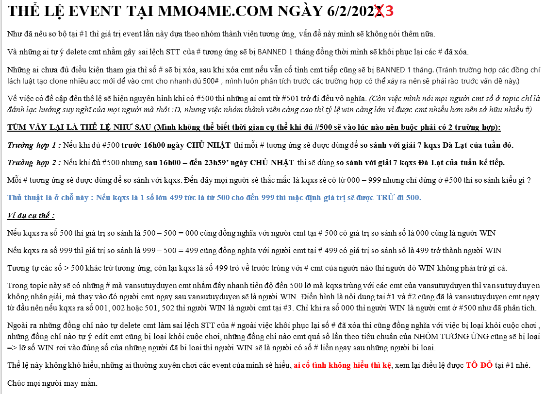 Nhưng mình sẽ làm tròn giờ có kết quả là 16h30 hôm nay. Ai WIN thì tự đối chiếu và báo danh nhận giải tại topic này trong vòng 24h tức là hạn báo danh chỉ đến 16h30 ngày mai 9/2/2023.