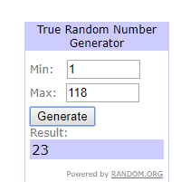 tritbt said: 1. #23 View attachment 99283 2. #43 View attachment 99284 3. #4 View attachment 99285 4. # 57 View attachment 99286 5.#33 View attachment 99287 Click to expand... random có gì đó không ổn min = 1, max = 118. Mấy bạn comment số 1000 thì sao ta