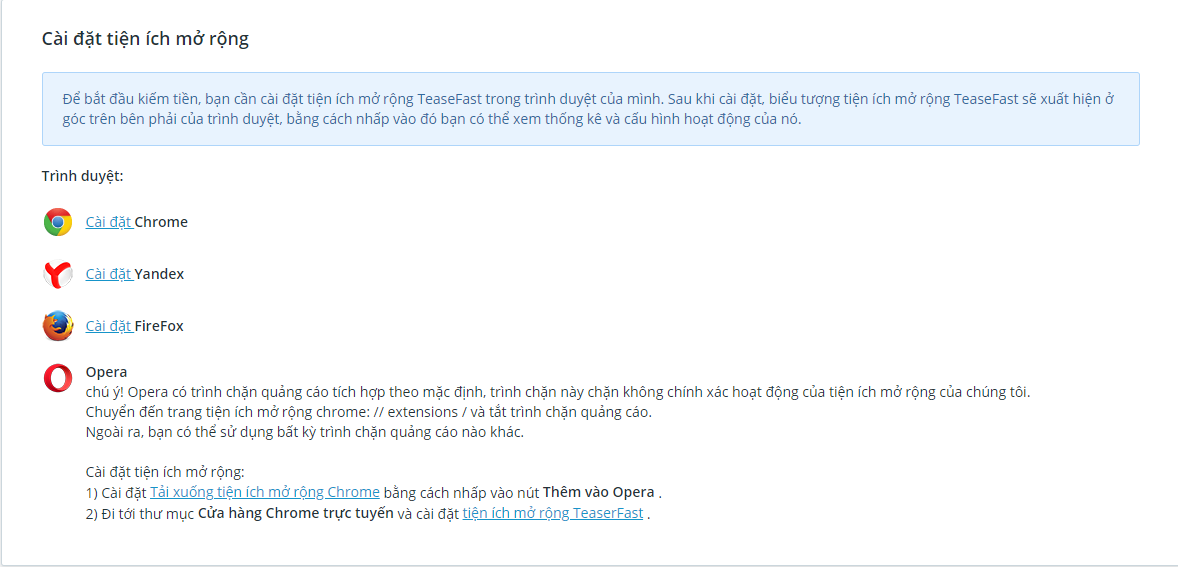 Anh em dùng trình duyệt nào thì tải bản tương ứng về nha. Cài đặt xong anh em chỉ việc vivu lướt mạng tận hưởng thành quả thôi.