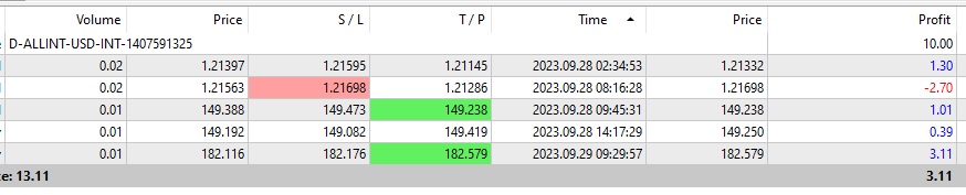 300$ thì vẫn đánh 0.01 là đẹp bác ạ, cần rèn kỷ luật hơn. Chứ tâm lý lúc gồng lỗ 10% của 300$ với 10% của 10k khác nhiều lắm.sau 3 tuần tăng risk, tâm lý thấy vẩn ổn, nên tuần này thử tăng lên 0.05 với vàng và 0.1 với cặp tiền để xem phản ứng tâm lý thế nào. hy vọng vượt qua, cố lên tôi ơi!