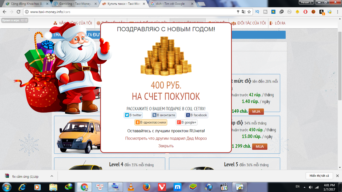 chuẩn . nhưng e đăng ký mới dc 400rub từ noel,Máy bác cứ bị bác này lừa , đây là quà tặng của thèn già noel và phải đủ yêu cầu gì của nó mới được tăng và nó tặng random 1 số RUB và random vào các loại ví trong game) . Chứ ko phải là lập TK mới được tặng