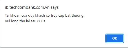 Khoảng 1 tháng gần đây, Techcombank của em hay tự động bị khóa 600 giây. Không biết có bác nào bị giống em không? Nâng cấp hệ thống cả năm trời mà chưa xong, cứ phát sinh lỗi linh tinh, dùng bực cả mình :popo_angry: