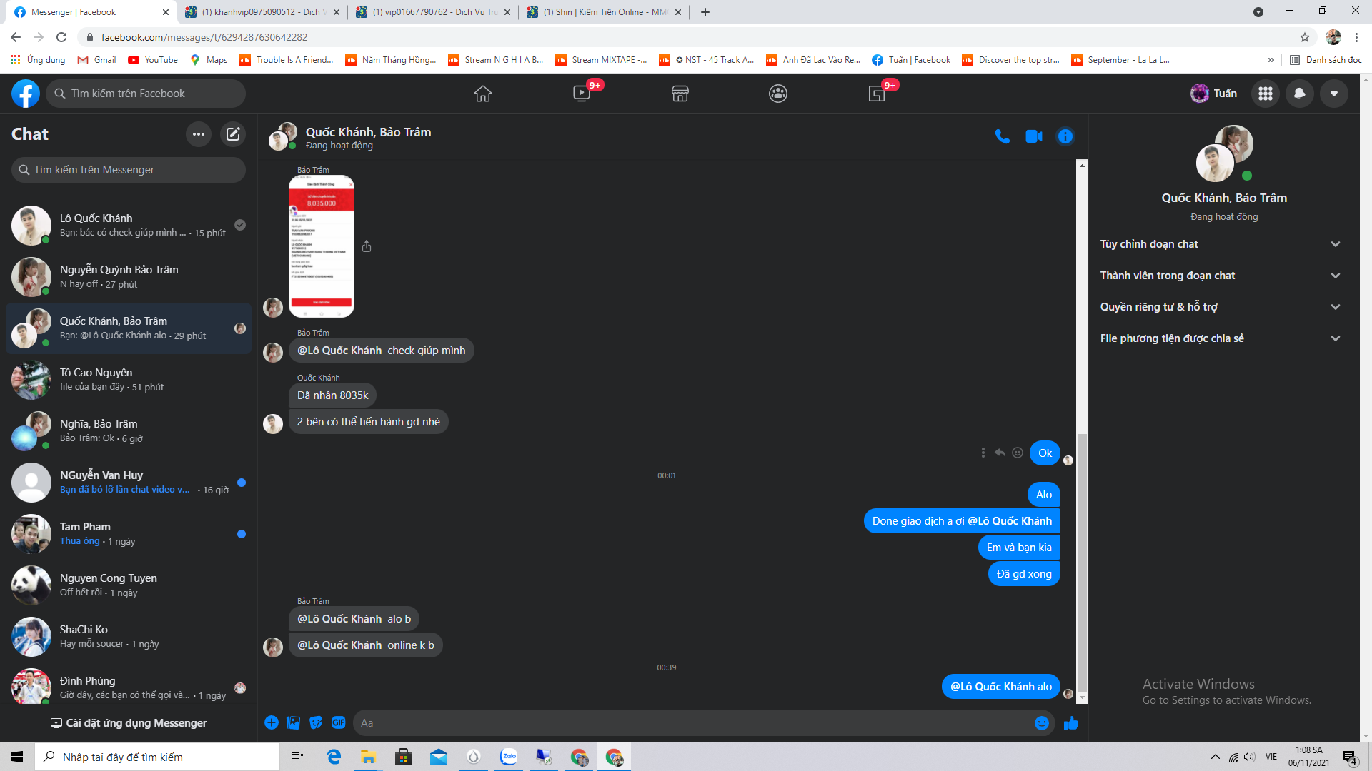 Thì gd từ chiều tối, đến 1h sáng báo done, xong thì người ta cũng phải nghỉ ngơi chứ, giờ làm việc thì treo trên wall rồi, b check lại mấy đoạn tin nhắn mình đã Full trong này rồi nhé 😄