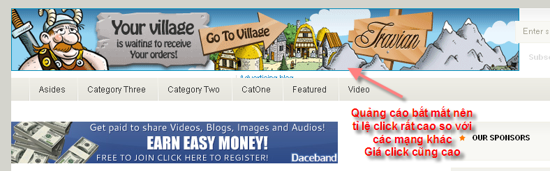 Hình 3: Tỉ lệ click cao hơn so với Adnet,...giá trị của mỗi click cũng cao so với mặt bằng hiện nay