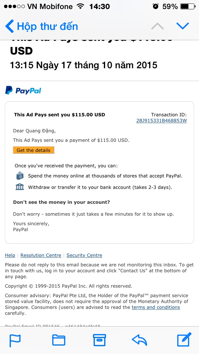 các bác cứ yên tâm nhé. tiền kiểu gì cũng về ko có j phải sốt :D