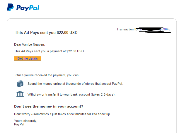 vừa đúng 2 ngày mặc dầu ko có mail pp nhưng trong PP có tiền