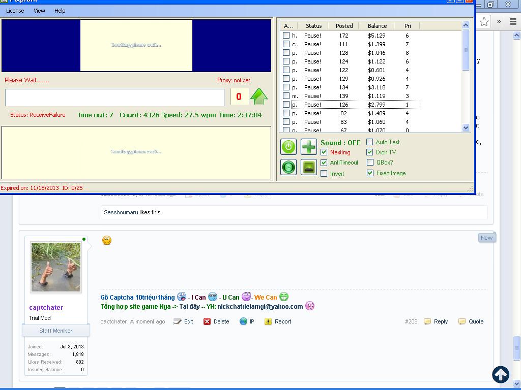 :) Hi proof mình post lên không phải để shown hàng chứng tỏ mà đơn giản ở đây cm cho các bạn thấy captcha cũng là một nghề hot đó và thu nhập không có giới hạn, cũng như thớt vậy thôi mục tiêu 10tr/month nó phụ thuộc vào mỗi người thôi. Còn proof ai tin hay không với mình không quan trọng mình làm được mình hưởng thôi nó cũng không ảnh hưởng đến các bạn :D mog cậu hiểu. Mà mục đích chính của mình góp ý kiến show proof để đạt được 10tr/month :D. Mình cũng ít khi onl forum hay cmt lắm nên lâu lâu chém gió tí mấy bạn cũng đừng gạch đá gì nhiều nha:D. Thank all chúc các pro kiếm nhiều tiền. :)