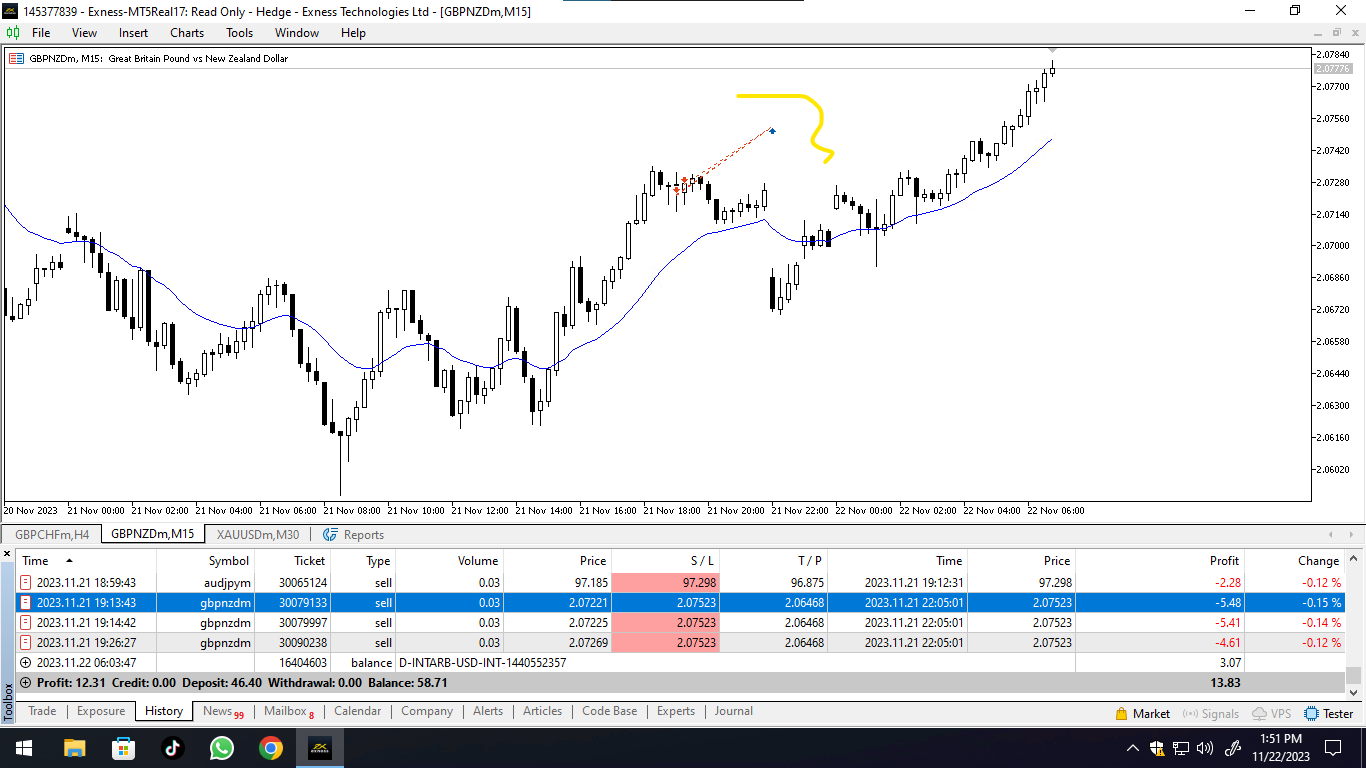 Cuối phiên bị giãn pread đó bác, đáng lí ra lệnh đó sáng chốt có lời nhưng đánh mấy cặp chéo hay bị vậy phải chấp nhận rủi ro, dãn 20pip luôn, hơi đau, để tối ưu lợi nhuận thường mình để sl hơi ngắn nên rút kinh nghiệm đợt này hạn chế để qua đêm các cặp tiền chéo.Mình mới học trade nên không hiểu lắm, mình thấy lệnh này, giá nến chựa chạm tới, mà lại bị hit stoploss -15$, sao lạ vậy nhỉ?