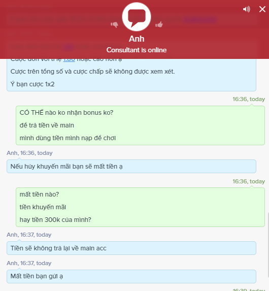 Con support này chắc mới vào nghề. Nguyên văn tiếng Anh về bonus đây