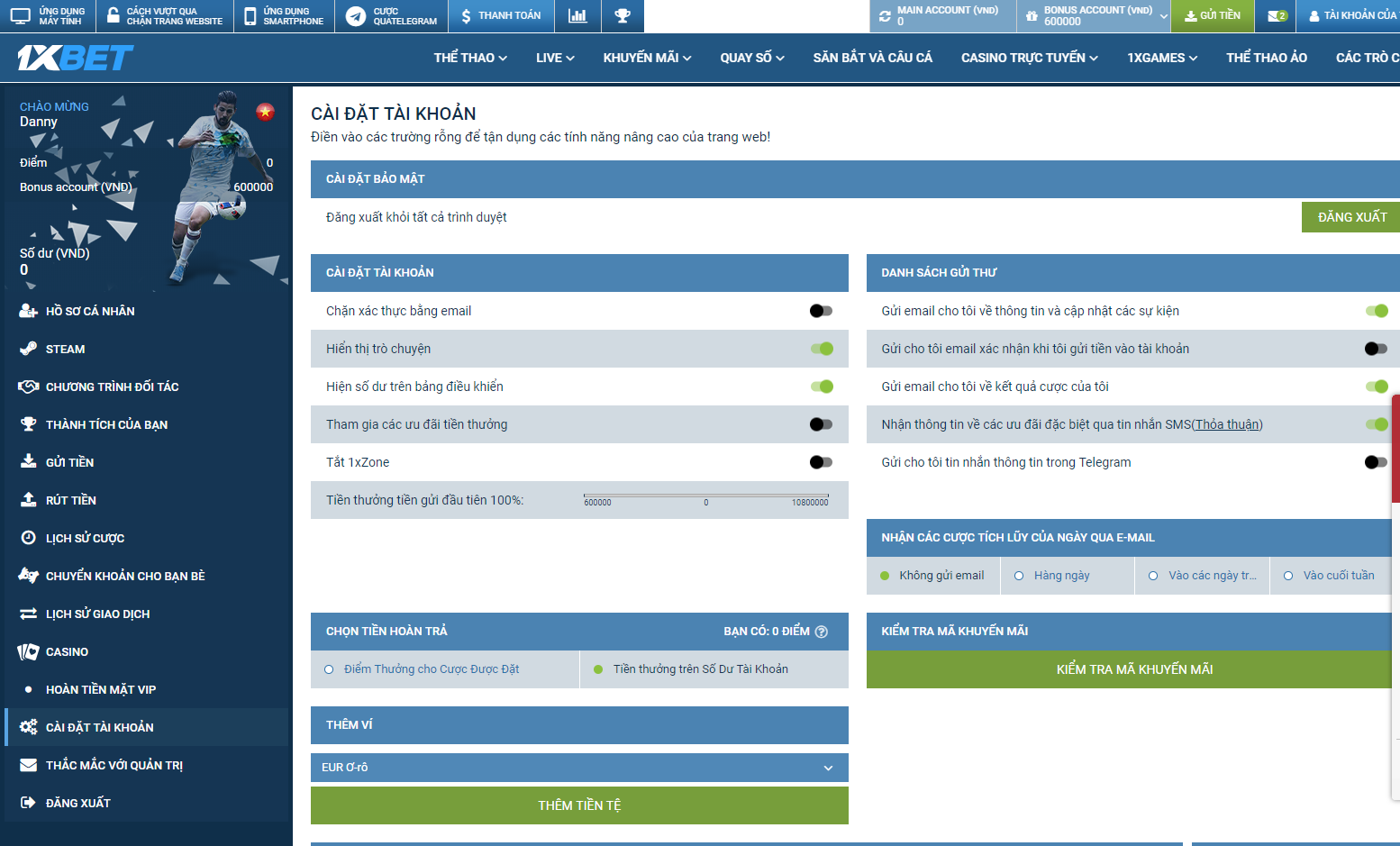 Sau khi tiền khuyến mãi đã được sử dụng, tài khoản chính của bạn sẽ được cập nhật đủ số tiền khuyến mãi. Nếu, sau khi hoặc trong khi sử dụng khuyến mãi, số dư tài khoản khuyến mãi bằng 0, tiền khuyến mãi và tiền gửi xem như thua.