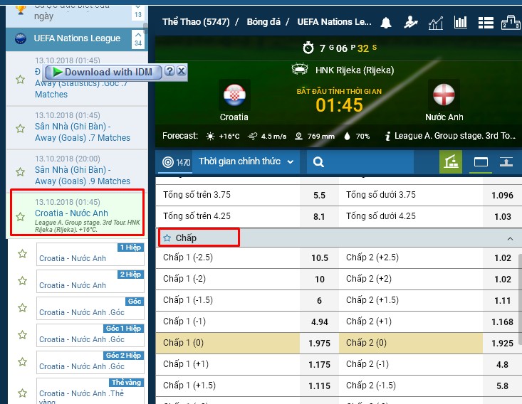 Bạn kéo xuống phía dưới sẽ thấySao mình chỉ thấy kèo Thấng/Thua, Trên/Dưới mà không thấy kèo Chấp (Handicap) đâu cả. Bạn chỉ giùm với. Cảm ơn!