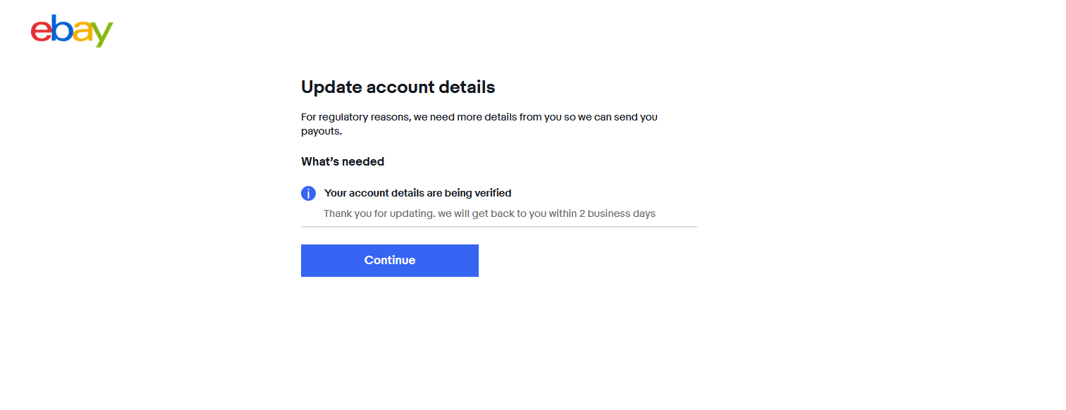 I have reviewed your account details and after further review of your account, we've determined that the inability to verify your information poses too great a risk to the eBay community. Due to these concerns, we are unable to send any funds to the linked bank account and will follow the escheatment process in accordance with state and federal regulations.