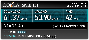 thật ra test bằng speedtest.net ko nói được gì ,hãy lấy idm download 1 file rồi post lên tốc độ đó mới chính xác![]()