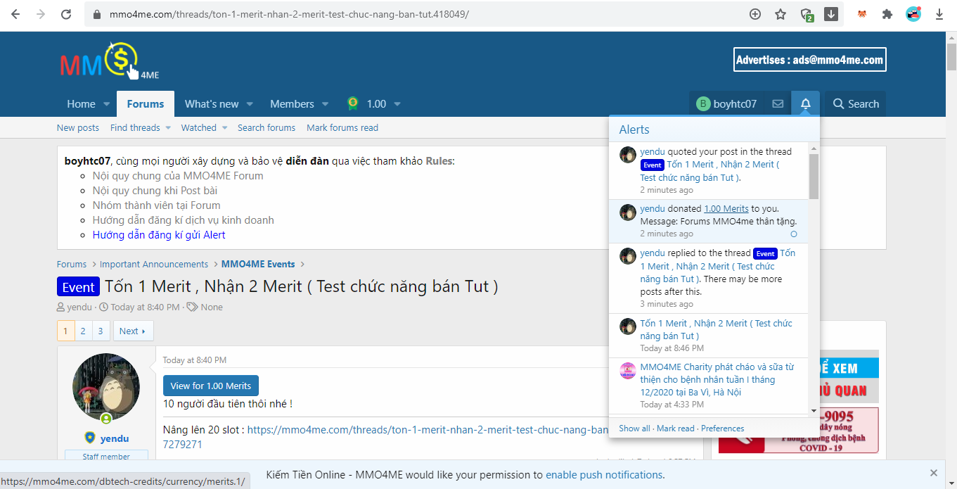 Event Tốn 1 Merit , Nhận 2 Merit ( Test chức năng bán Tut )