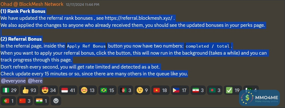 Con Blockmesh có update mới về rank bonus và referral bonus. Ngoài ra ở phần Pert ae follow Xenopus để tăng tỷ lệ rate lên nhé.