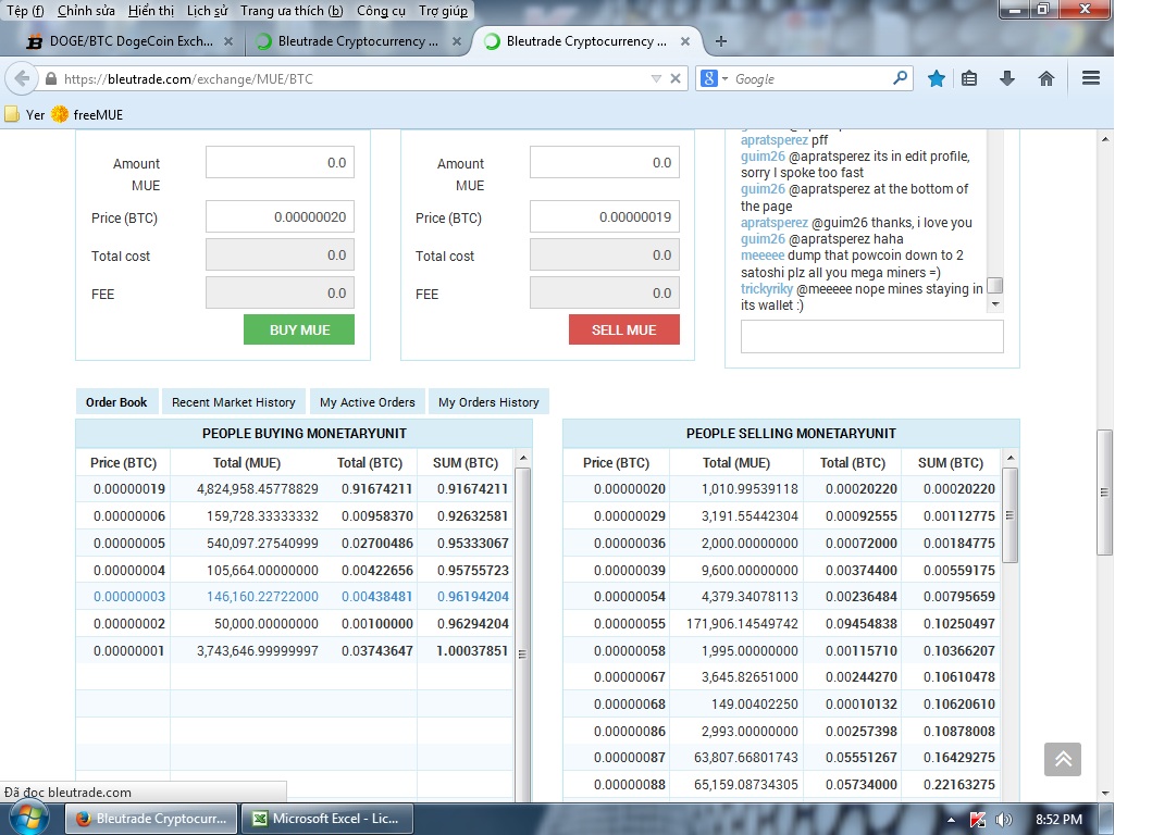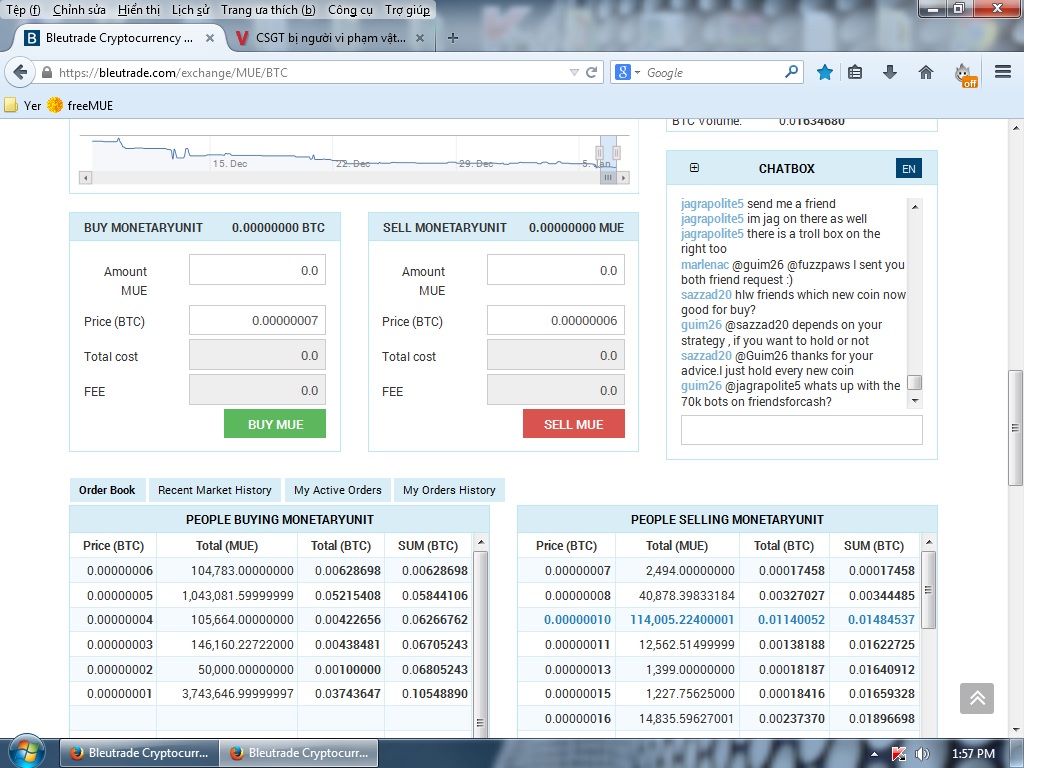 100k mue hiện h khoảng 600k satoshi BTC~1,72$ thôi (giá 285$ 1 BTC). Để lên giá chút rồi bán:oops:. Nếu bán đc ở rate 10 thì 100k mue đc khoảng 2,85$ theo giá btc hiện h 285$/1 BTC, lên rate 15 thì thím đc 4,2$ nếu BTC cũng ở mức trên. Lỡ BTC tăng lên 400$/1 BTC mà thím bán rate 10-15 thì thím đc 4-6$/100k mue