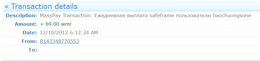 MassPay Transaction: Ежедневная выплата safeframe пользователю datmap002[/TD]