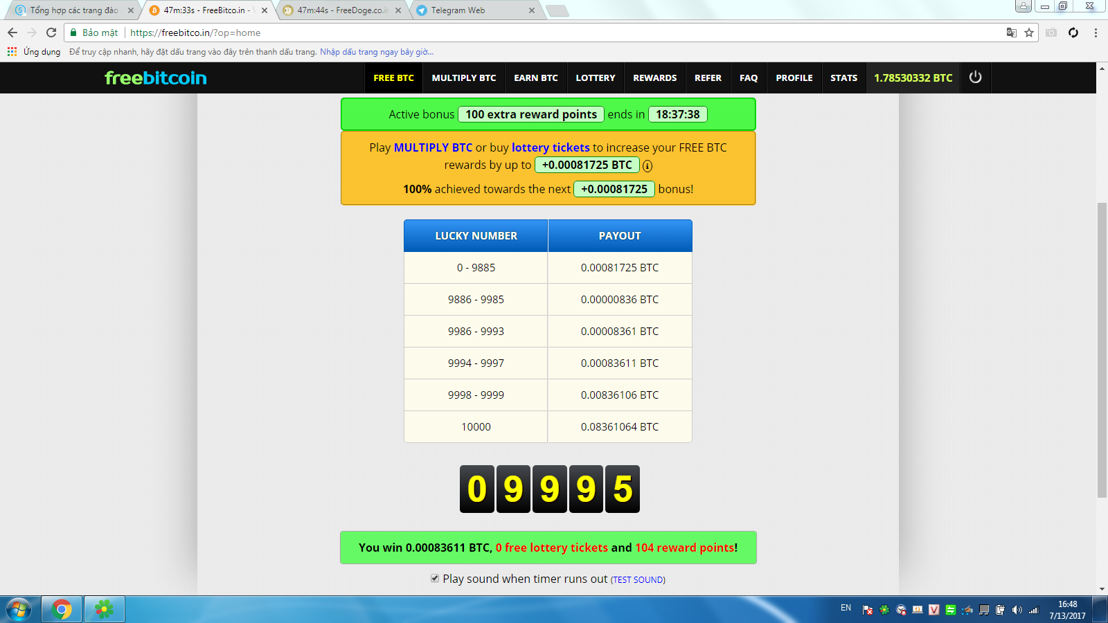 vâng thanks bác! Mà e làm phiền bác tý. E một máy PC thì có thể vào 2 acc ở 2 trình duyệt khác nhau không hay 1 máy chỉ được đăng nhập 1 acc thôi ag.moon thì ngày nào cũng phải vào, nếu gián đoạn 1 ngày sẽ bị mất % và phải làm lại từ đầu , ko đủ 100% thì khó mà kiếm đc nhiều đc , rảnh thì nên claim chứ đừng để nó cộng dồn quá cũng chẳng đc bao nhiêu