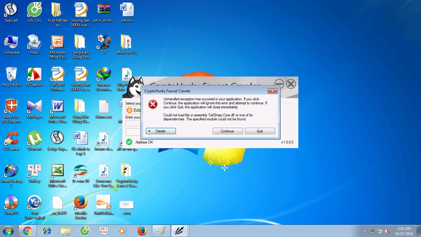 Nếu bác nói về soft CryptoHuskyFaucet_Crawler_1.0.0.5 thì post hình lỗi lên để mình tìm cách fix nhá ! còn bác @vianhcancoem thì chỉ post web săn STS cho anh em, soft mình cung cấp nên mình sẽ giải quyết lỗi cho các bạn, để cho bác @vianhcancoem chuyên tâm săn Web STS cho anh em ( web cào STS giá cao cao nhe bác @vianhcancoem :p )