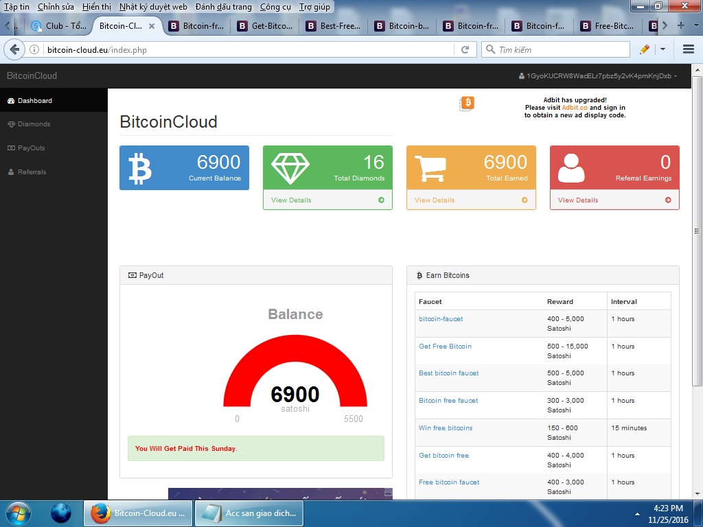 Ừ ví trung gian mới đấy bạn, đủ 5k5 là nó sẽ pay.nó bảo thanh toán qua cái bit-cloud.eu là dư lào vậy thớt ? cũng tương tự như cái faucetBox hử ??