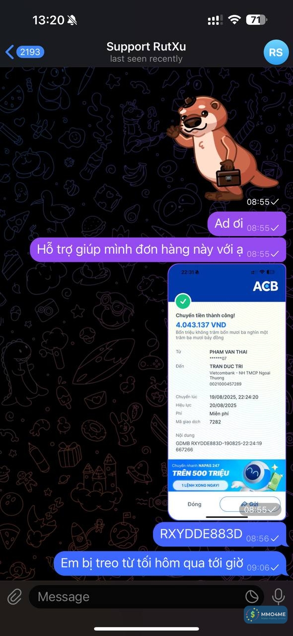 Warning Tổng hợp Refund các trường hợp giao dịch chưa hoàn thành của rutxu.com