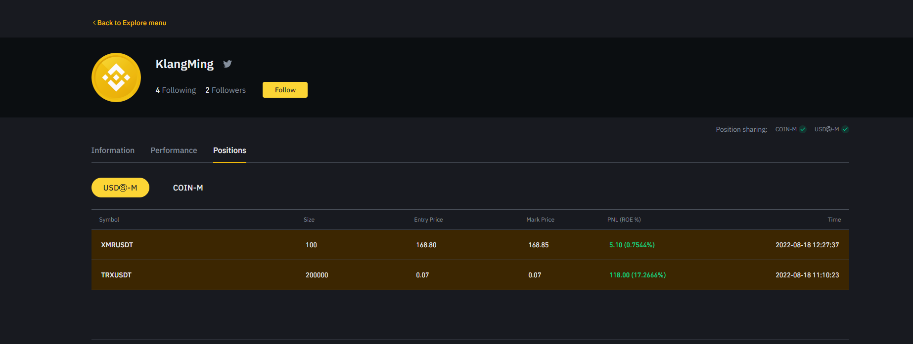 Tool copytrade từ bảng xếp hàng leaderboard của sàn binance do mình tự code, hoàn toàn free ae nhé.