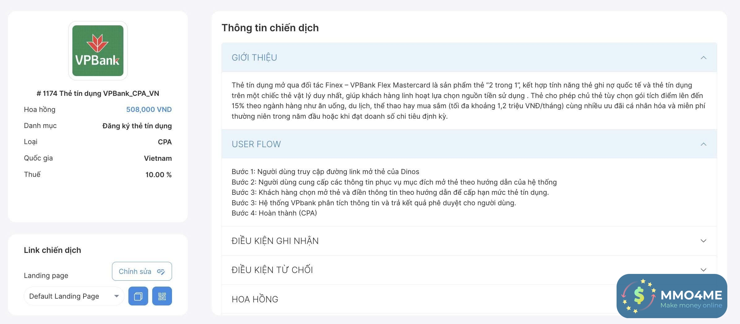 Hoa hồng: 508,000 VND cho mỗi đơn đăng ký thẻ thành công.
