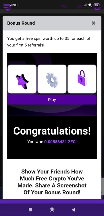 - FREE BTC: 1h quay 1 lần, Mỗi lần được tầm 1 - 41 Satoshi, may mắn thì làm quả 412- 411830 Satoshi (Tùy vào giá trị BTC tại thời điểm hiện tại)