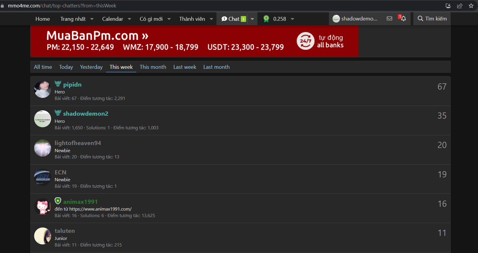 • Link get hình: https://mmo4me.com/chat/top-chatters?from=thisWeek