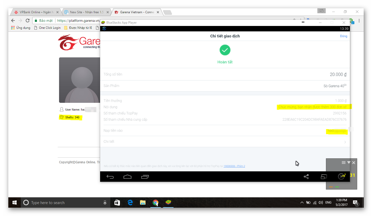 Tutorial Topay.vn - Event 340 sò Garena = 20k