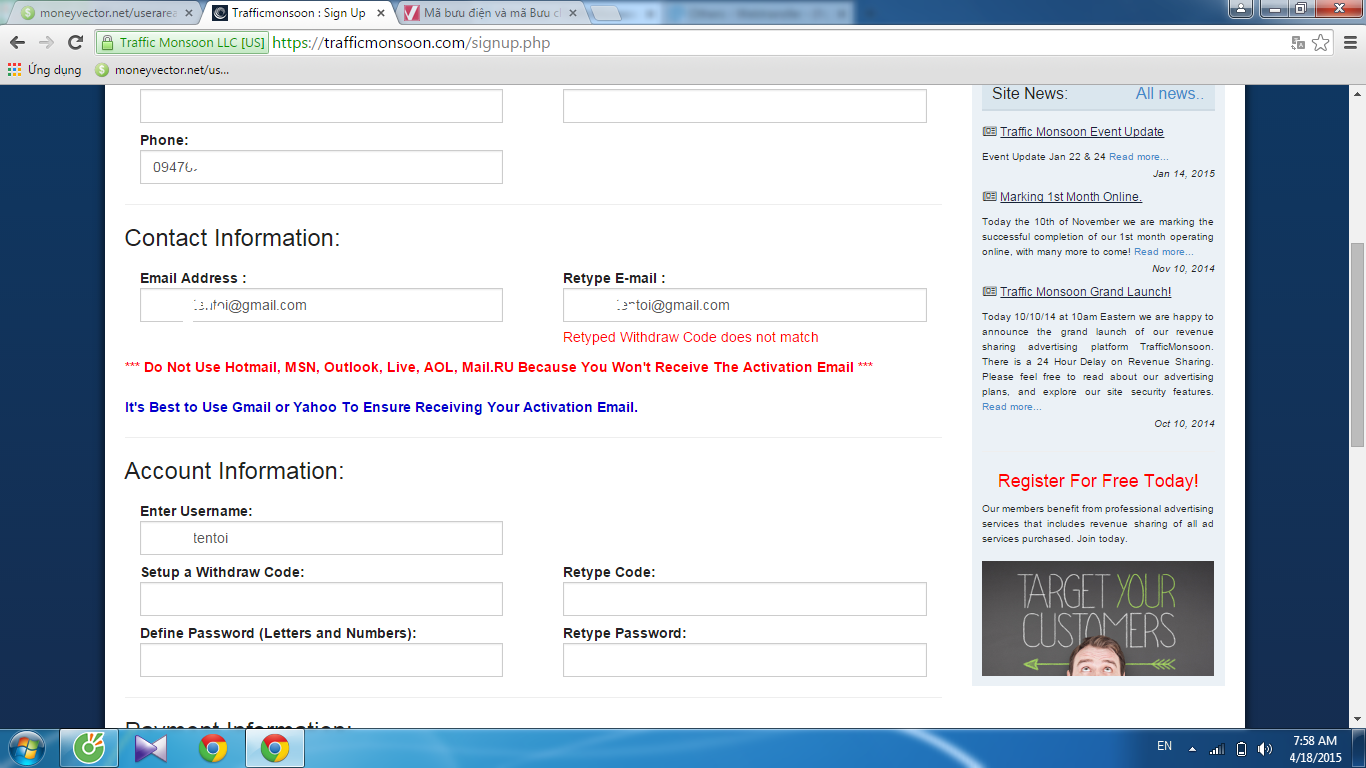 Matrix TrafficMonsoon-TrafficMonsoon.com - Site revshrare 110%, click PTC giá cao min $0.01+
