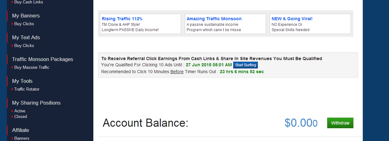 Có nhiều cơ hội hiện hữu lôi kéo mọi người tham gia vì thu nhập tiềm năng, vấn đề ai cũng đối mặt là cần móc hầu bao ra trước khi bắt đầu bán ra (cho thu nhập). Điều tuyệt nhất ở TrafficMonsoon là mọi người có thể bán traffic mà không cần mua gì cả.