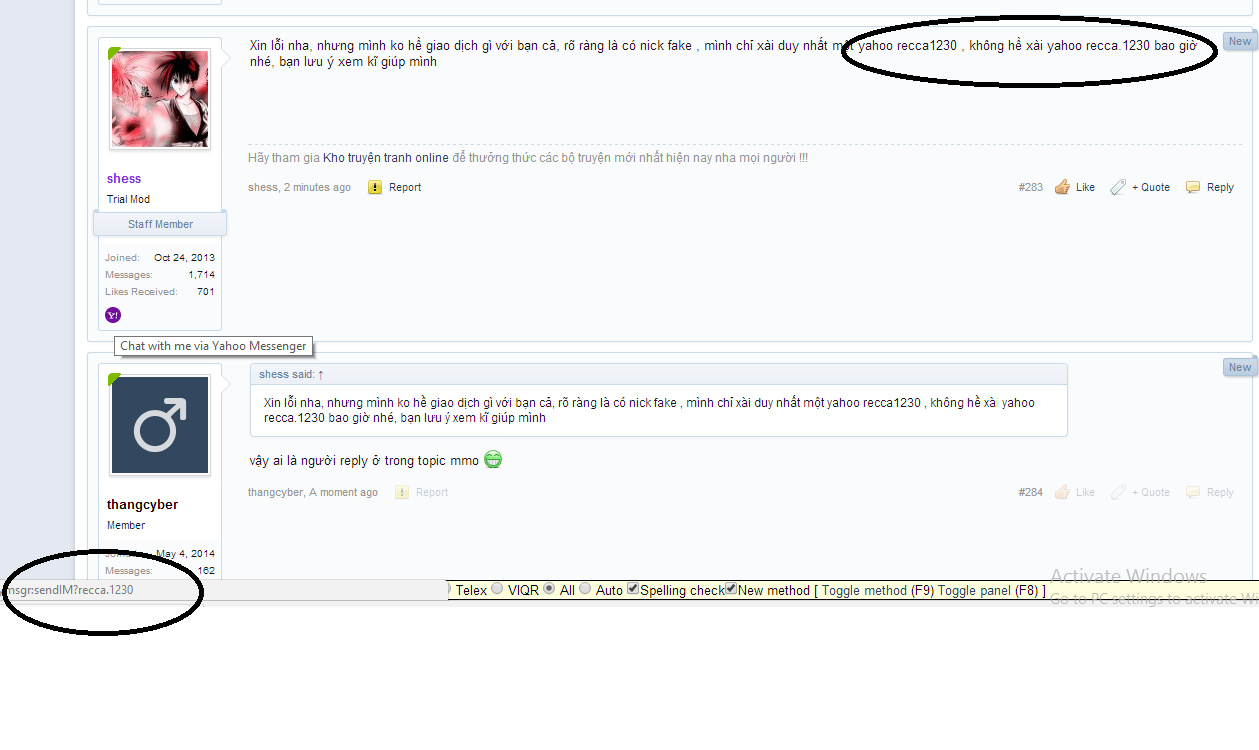 Xin lỗi nha, nhưng mình ko hề giao dịch gì với bạn cả, rõ ràng là có nick fake , mình chỉ xài duy nhất một yahoo recca1230 , không hề xài yahoo recca.1230 bao giờ nhé, bạn lưu ý xem kĩ giúp mình