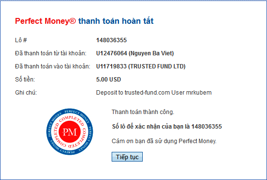 Received Payment 1.00 USD from account U11719833 to account U12049779. Batch: 148036558. Memo: API Payment. Withdraw to hungsentec from trusted-fund.com.