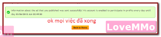 Cuối cùng để kết thúc bài hướng dẫn LoveMMO xin chúc mọi người thành công trong công việc của mình.Nguồn bài viết: http://www.lovemmo.biz/2012/06/tuthuong-dan-post-ads-o-classifiedgiant.html#ixzz1wcK77ip0