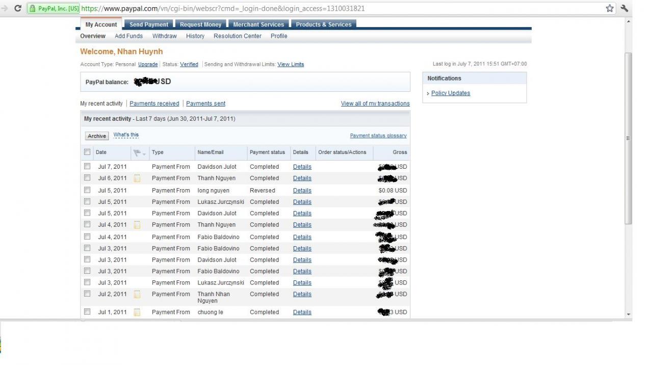 Manh Huynh Van sent you a payment of $0.42 USD.
