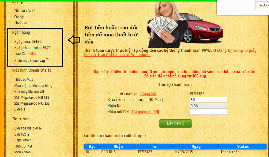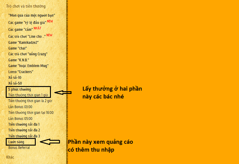 Phần trò chơi và tiền thưởng mỗi ngày, có nhiều trò chơi cho các bác lựa chọn:
