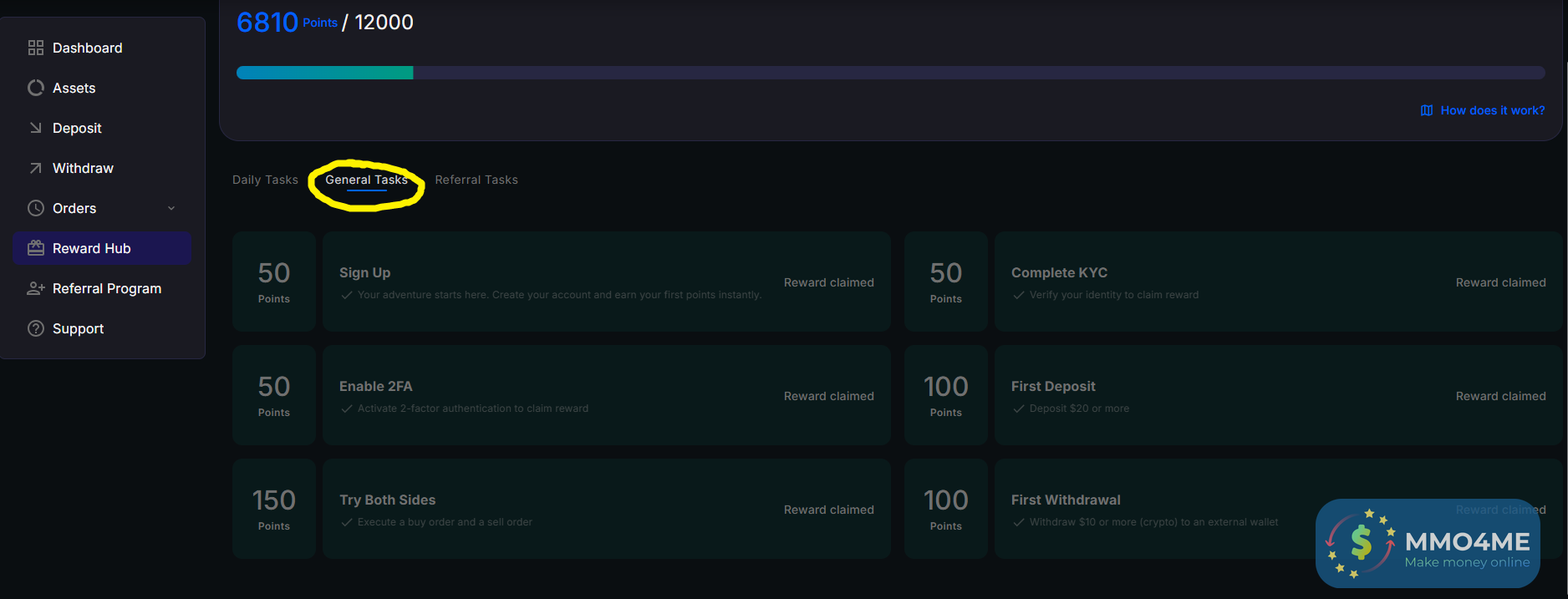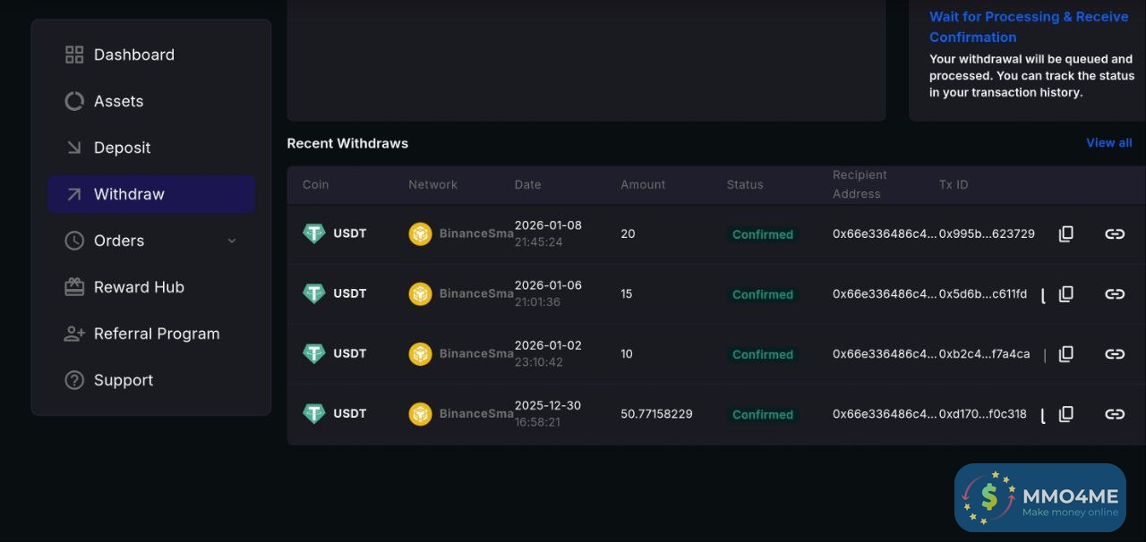 - Mấy task kiếm points = nạp tiền trade... m đã test nhiều tk nạp rút rất ok (ngay cả tk ko cần kyc), ae chơi an toàn hơn thì nạp min 20u trade vài lệnh kiếm đủ points thì out.