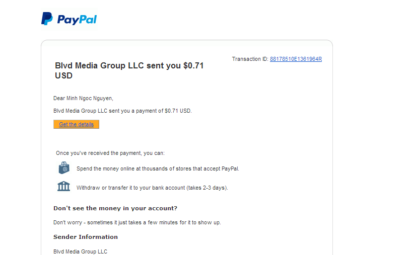 Mail pay $ c. BLVD cũng đã về nhémail sao cau ? hom nao paid the ?