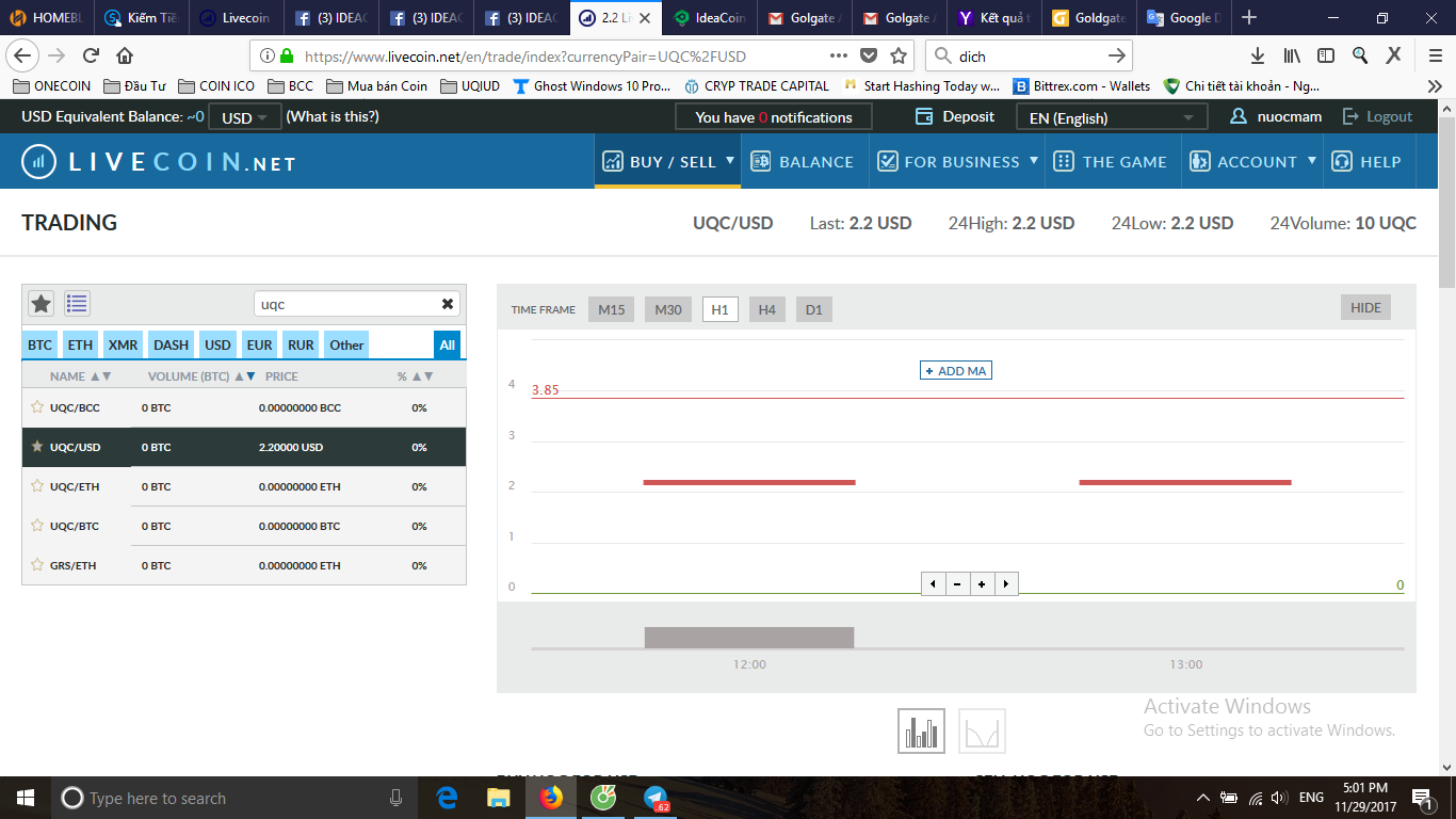nó chưa update giá xong cậu ạ. khi mà lên sàn chính thức trong hôm nay thì cậu chỉ việc vào get địa chỉ của UQC trên livecoin, sau đó sang MYE sent token UQC về cái địa chỉ UQC trên livecoin là được nha cậu