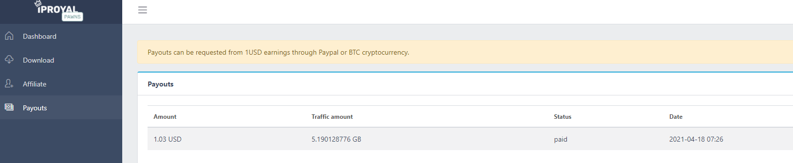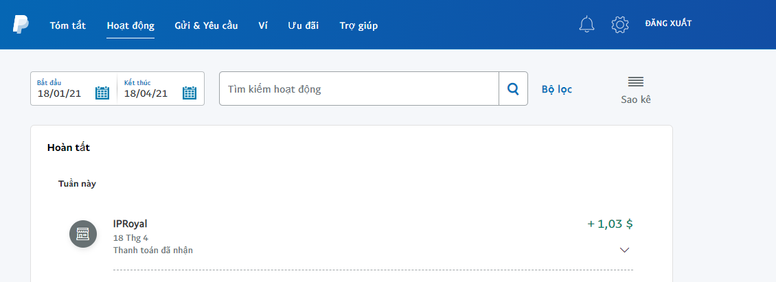 B4. Khi đủ minpay $1 vào ĐÂY -> chọn payouts -> điền mail Paypal là rồi rút là xong.
