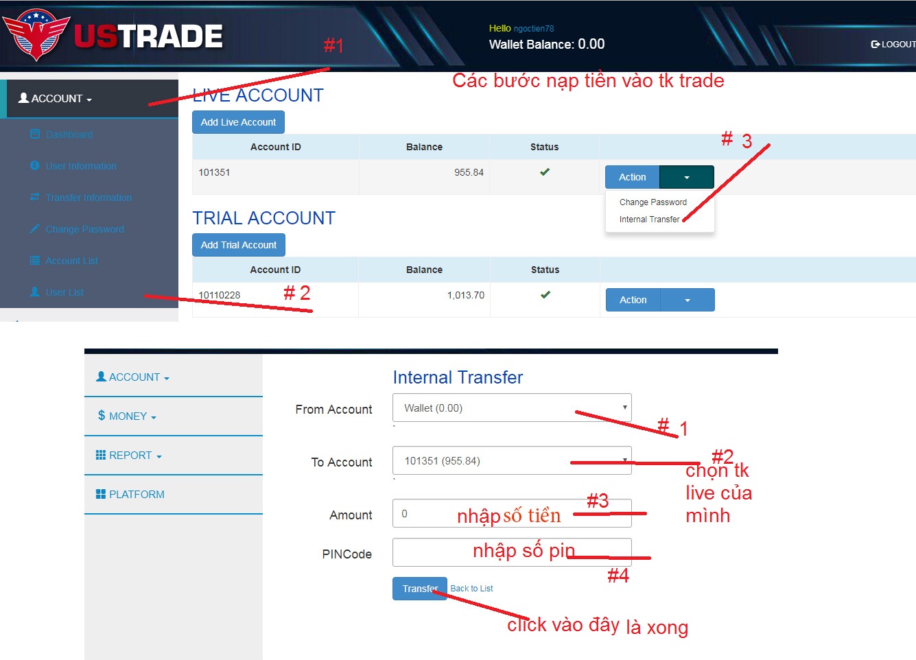 *Hướng dẫn nạp tiền từ tài khoản chính vào tk trade: